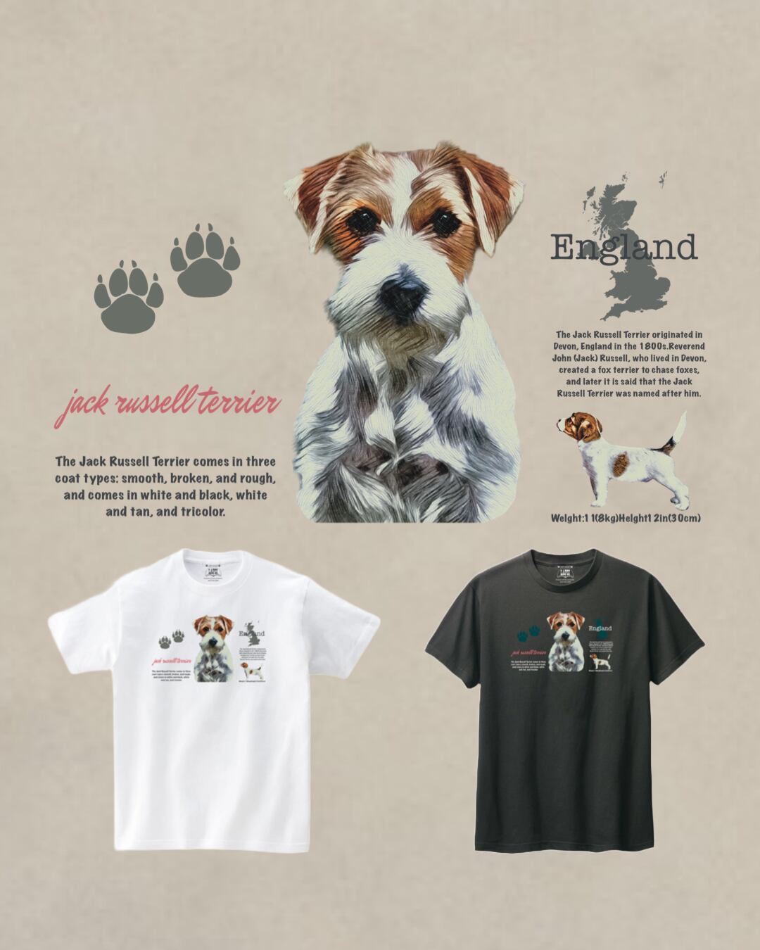 彼らは活動的で知恵もあり、トレーニングが得意です。探検好きで、元気に走り回ることが大好きです。また、家族との絆を大切にし、忠実なパートナーとして知られています。このような、歴史や用途に関する簡潔な解説も、Tシャツのデザインに組みこまれてます。