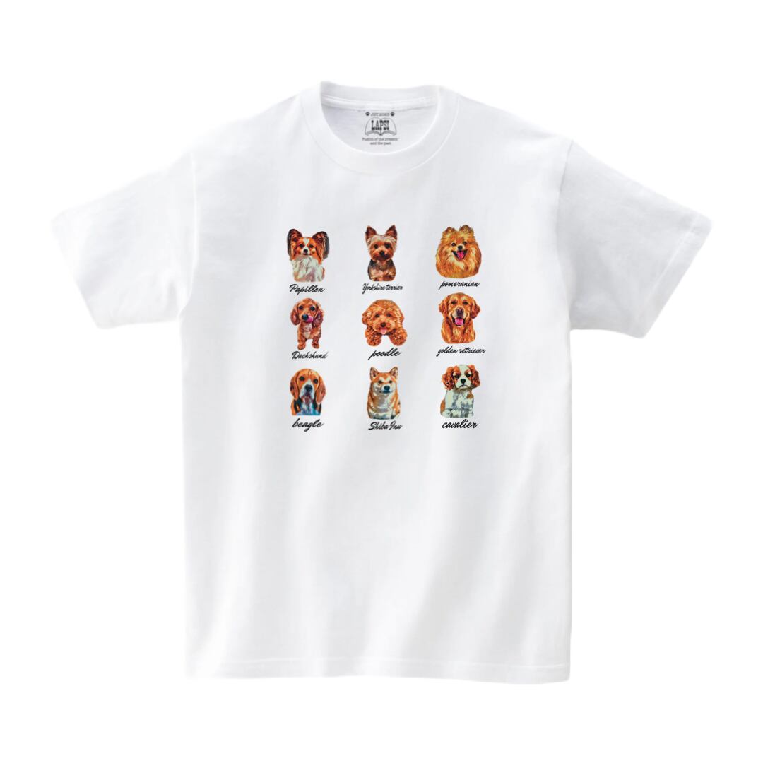 LAPSIから、新シリーズ「all dog 」の新作Tシャツが登場しました。9種類の犬種ごとに毛並みによってデザインが分かれています。