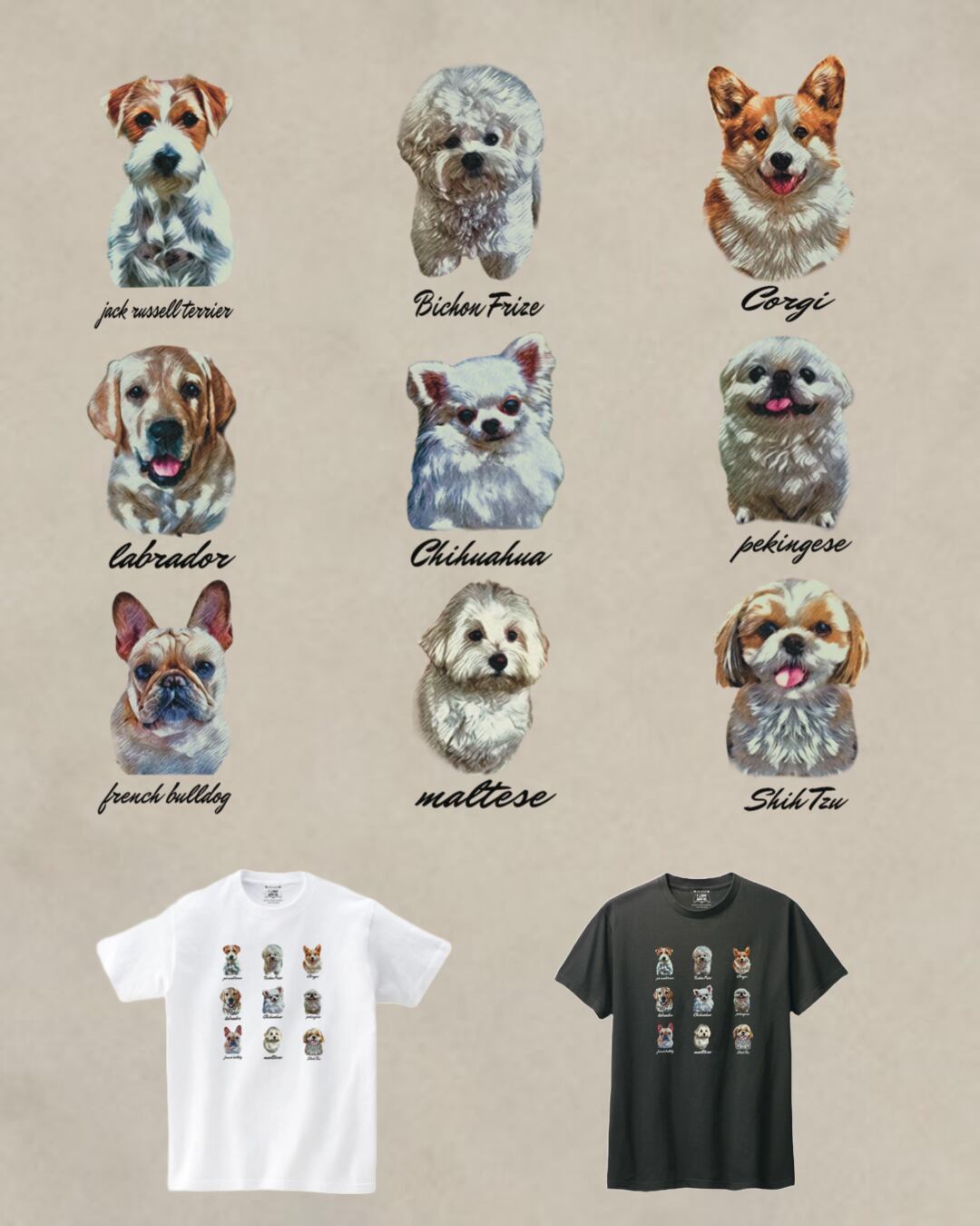 『All dog white fur Tee』のデザインは、白の毛並みを持つ犬種の特徴を見事に表現しており、愛犬家や犬好きの方々にとって、特別なコレクションとして楽しんでいただけます。