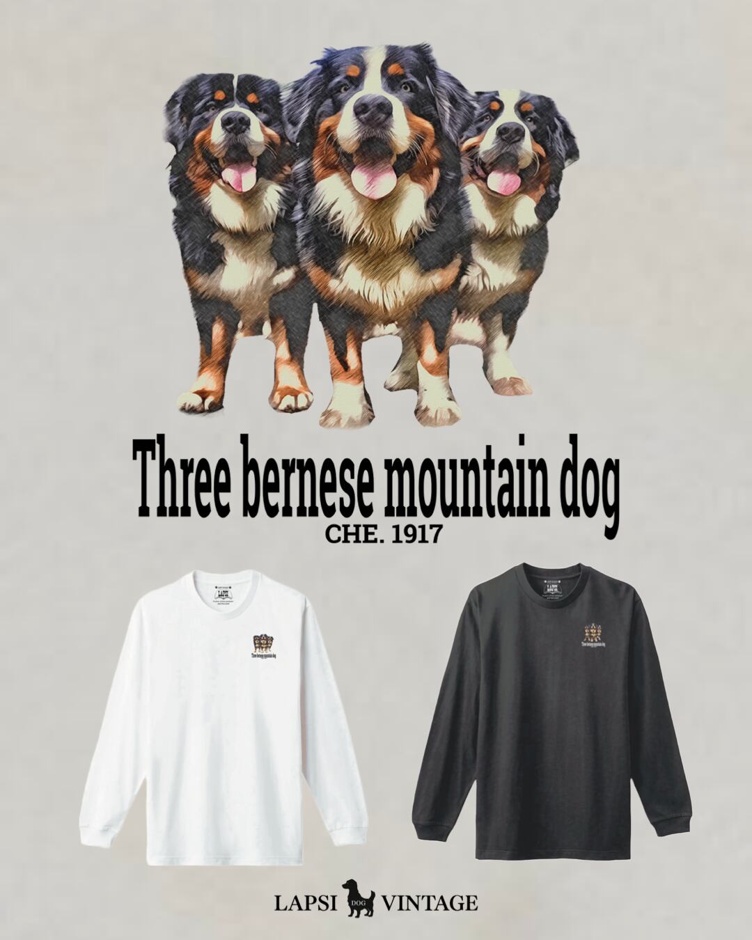 LAPSI Three dog series bernese mountain dog long sleeve tee