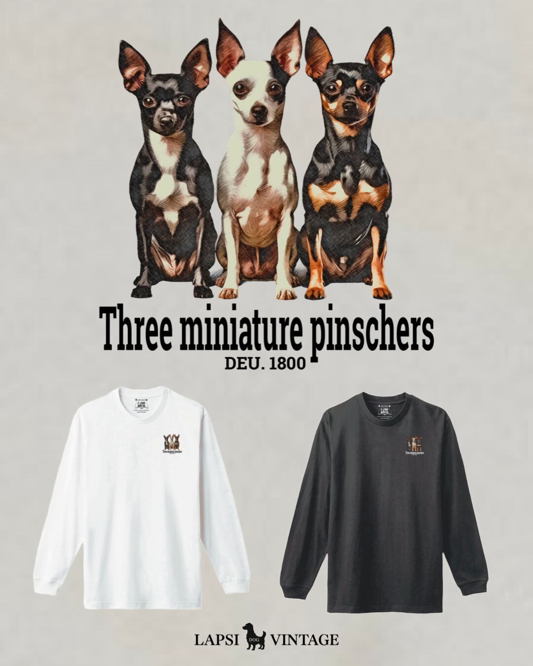 LAPSI Three dog series miniature pinscher long sleeve tee