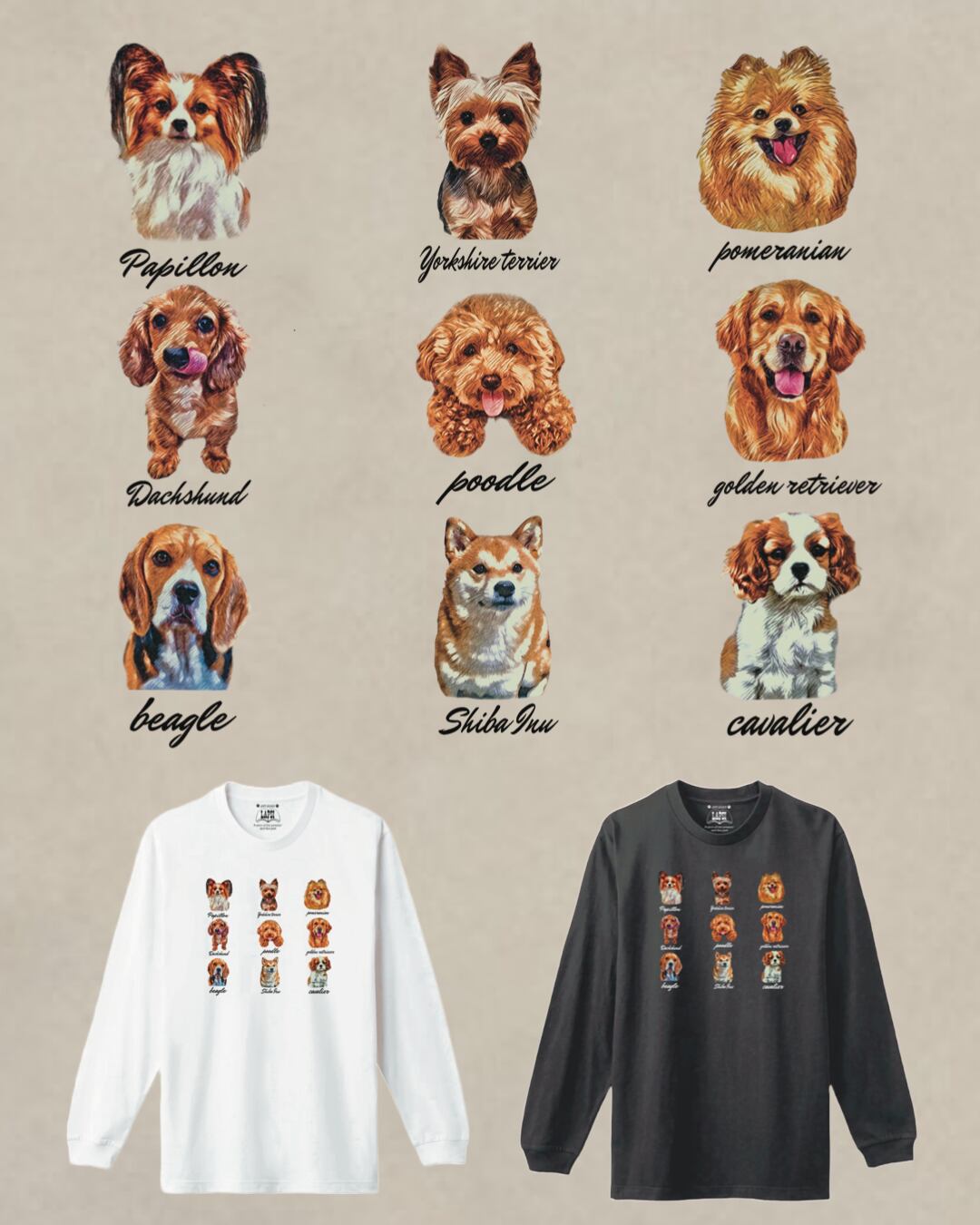 LAPSIから、定番シリーズ「All dog 」の新作ロンTが登場しました。9種類の犬種ごとに毛並みによってデザインが分かれています。